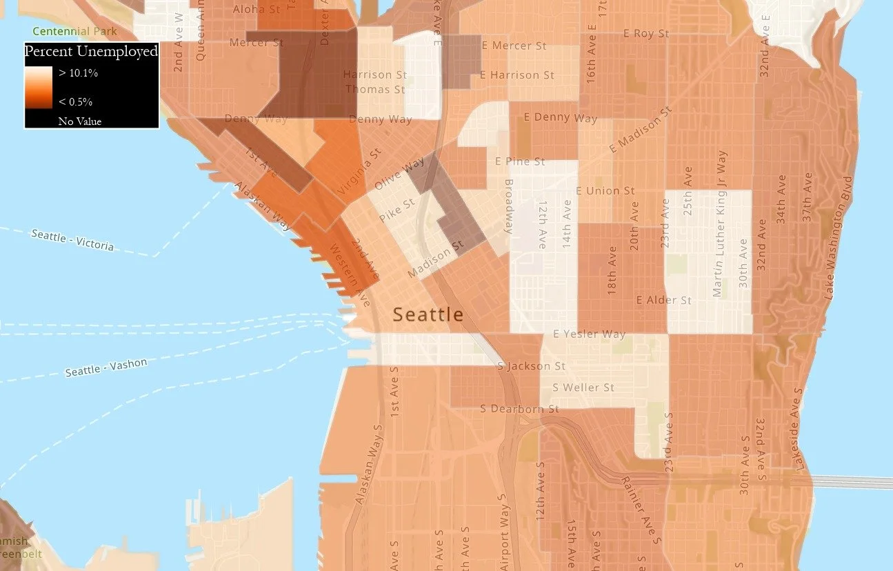Performed spatial demographic analysis on ArcGIS Pro, including unemployment rates, median household income, and public transportation use.