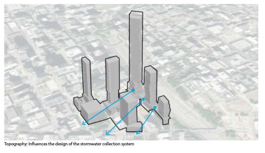 Imported 3D models into ArcGIS Urban for zoning, transportation, and stormwater collection analysis and further renderings.